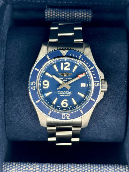 This Breitling Superocean Automatic 42 is in excellent condition, with minimal signs of wear. It has been professionally polished and tested for accuracy, making it ready for its next dive or daily adventure.