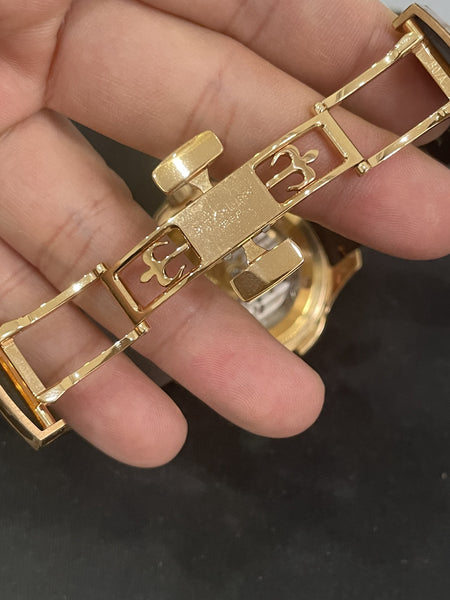 • Rose gold fold-over clasp engraved with the Calatrava Cross