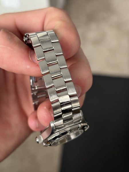 This TAG Heuer Aquaracer 300M Quartz 27mm is in excellent condition, with minimal wear on the case and bracelet. The crystal and bezel are pristine, and the movement has been tested for accuracy. A stylish and practical timepiece, ideal for any occasion.